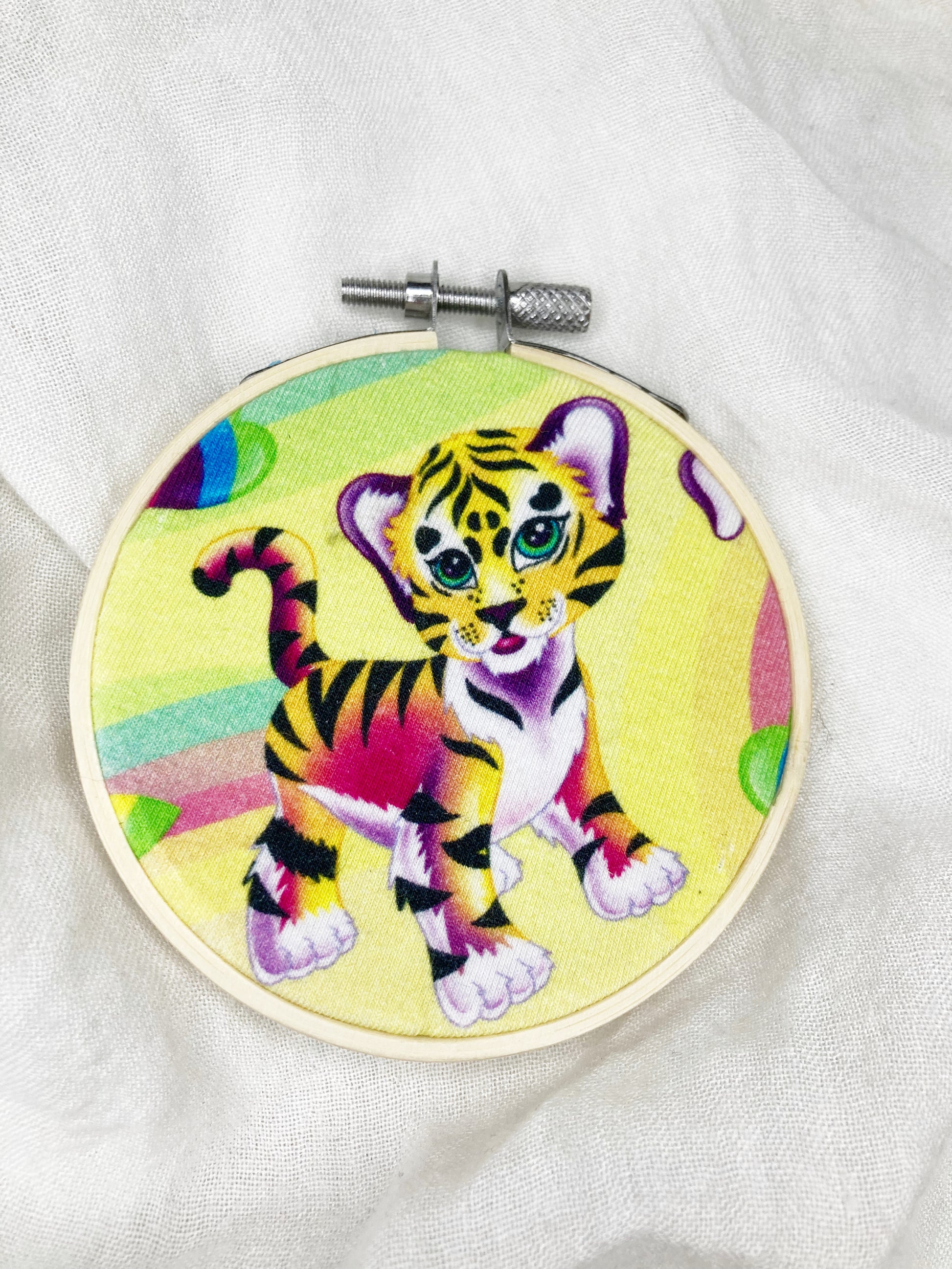 3” hoop with fabric. Image placement varies. Colors may differ in person due to device settings.
