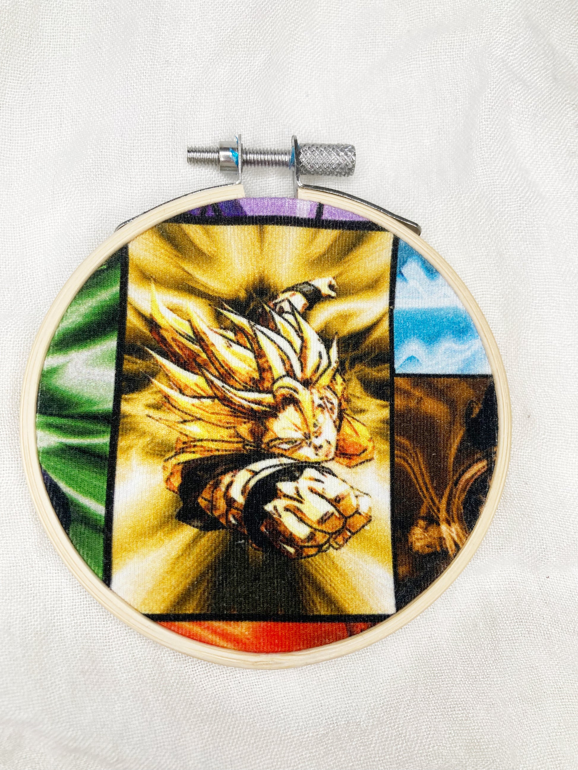 3” hoop with fabric. Image placement varies. Colors may differ in person due to device settings.