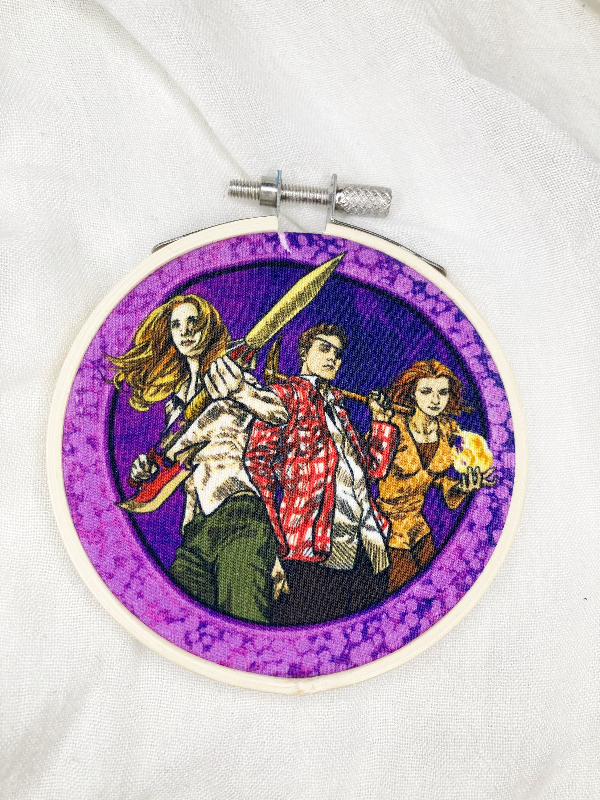 3” hoop with fabric. Image placement varies. Colors may differ in person due to device settings.