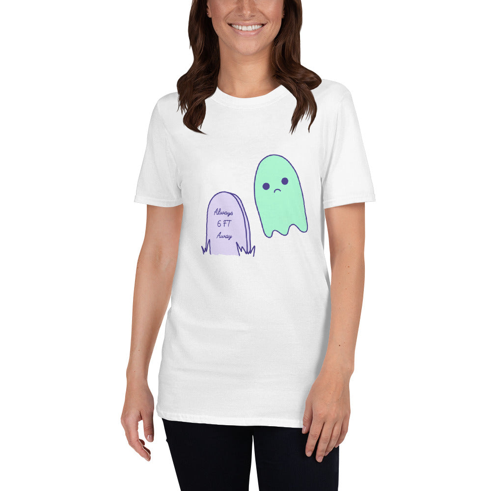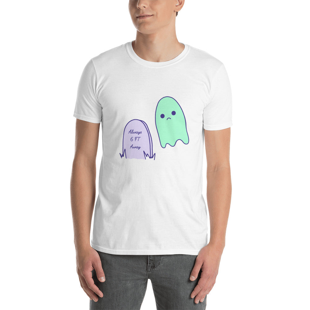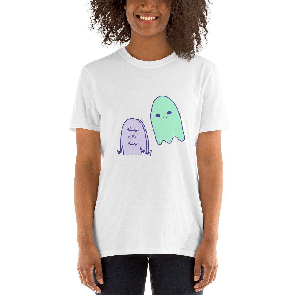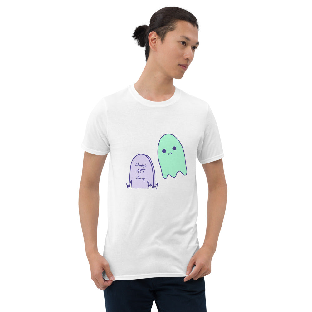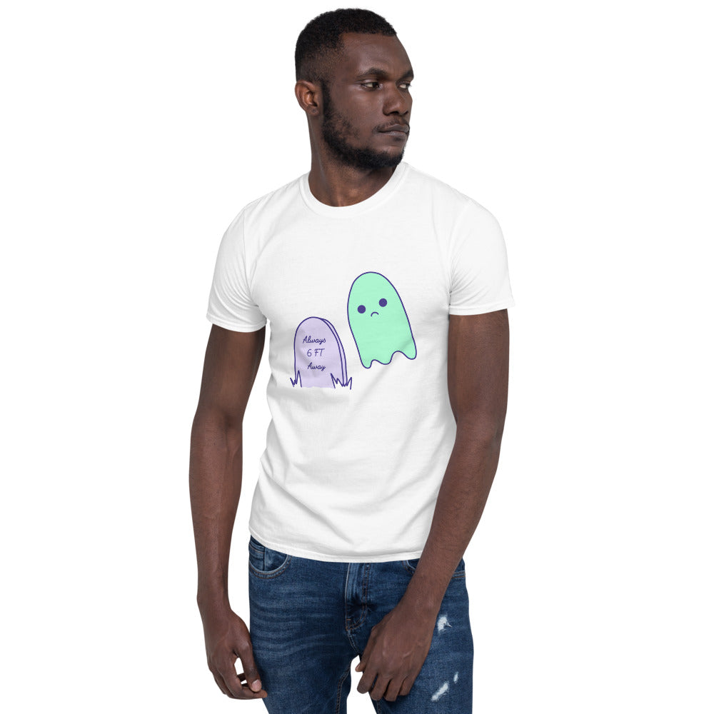 6 Feet Away Sad Ghost Comic Short-Sleeve Unisex T-Shirt