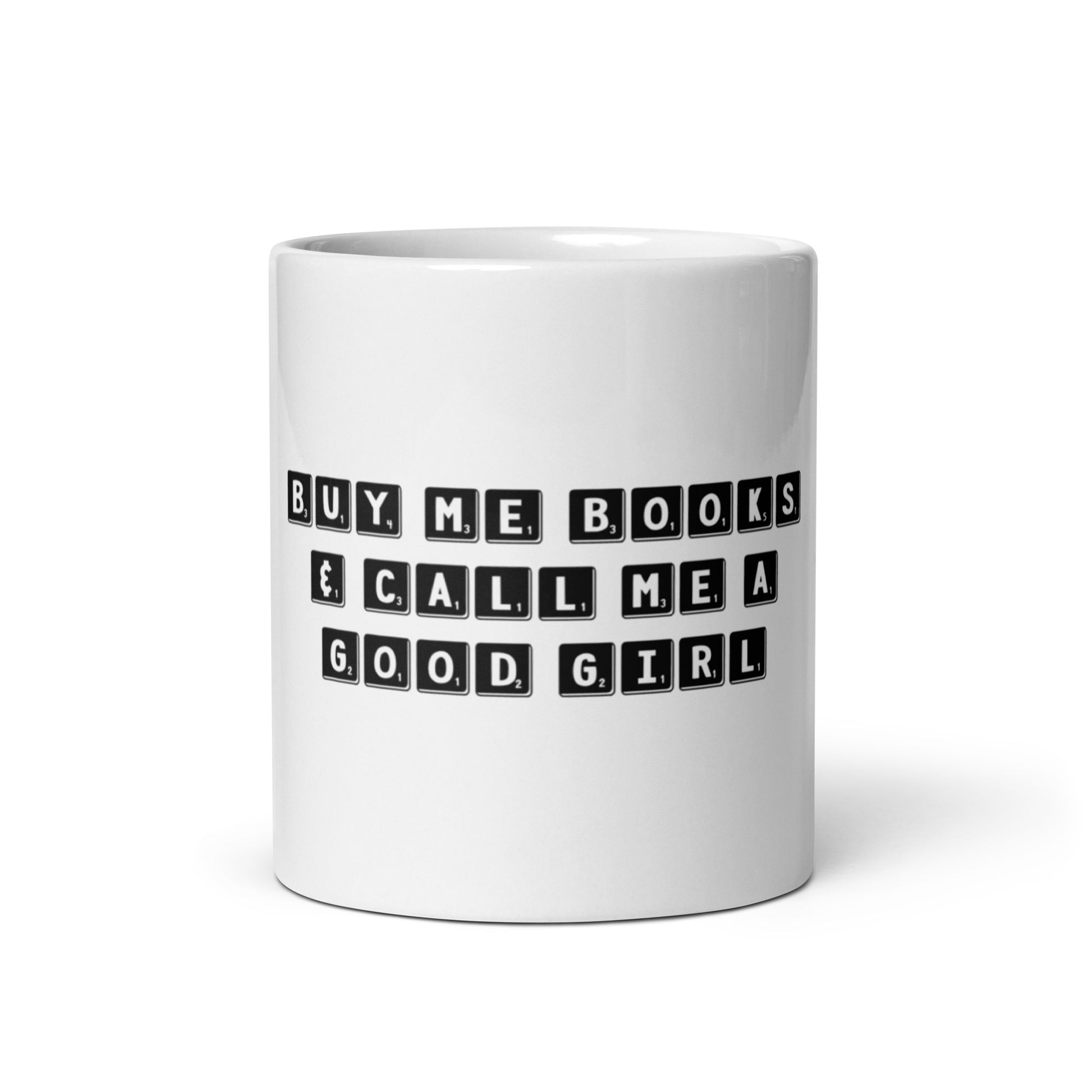 Buy Me Books And Call Me A Good Girl White glossy mug
