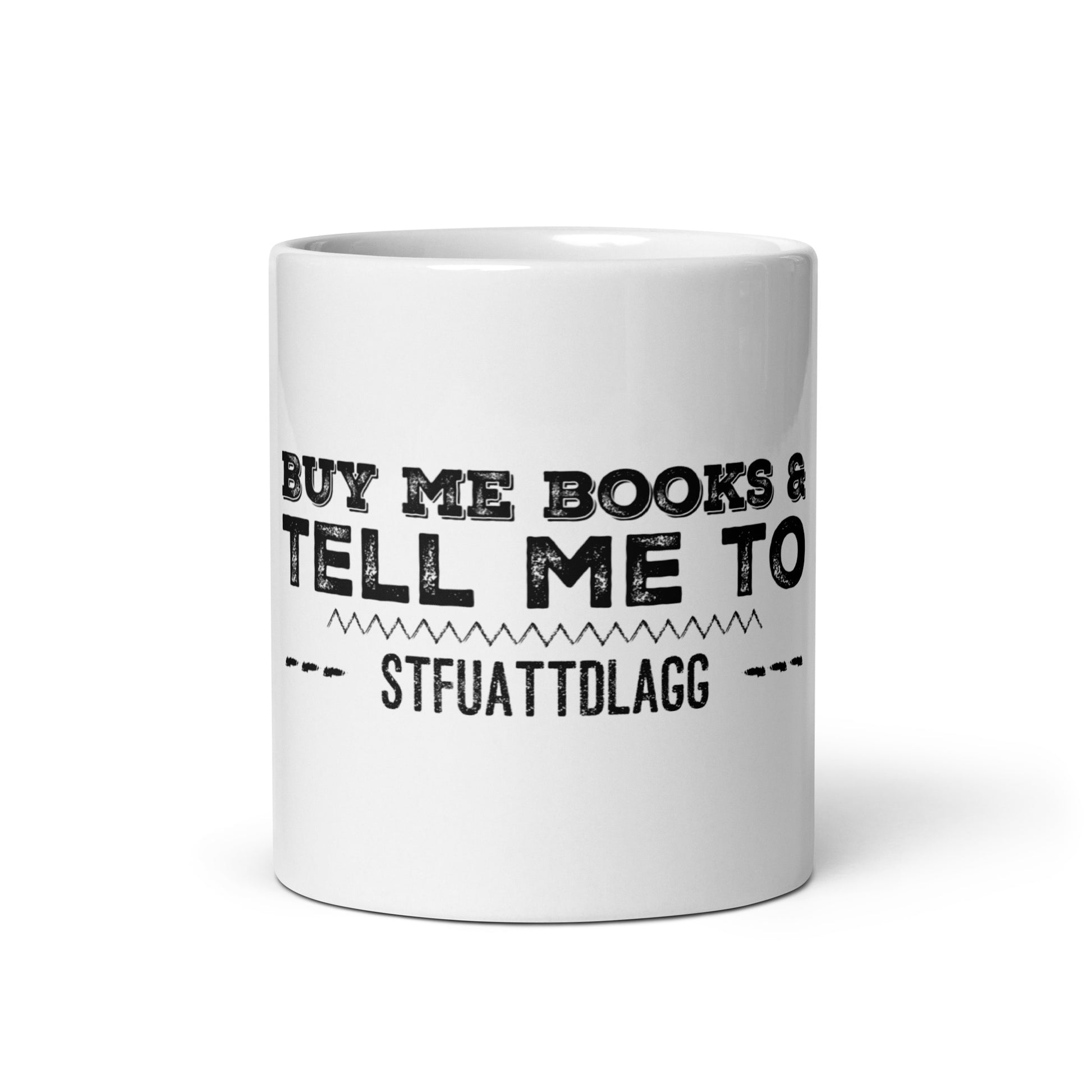 Buy Me Books And Tell Me To STFUATTDLAGG White glossy mug