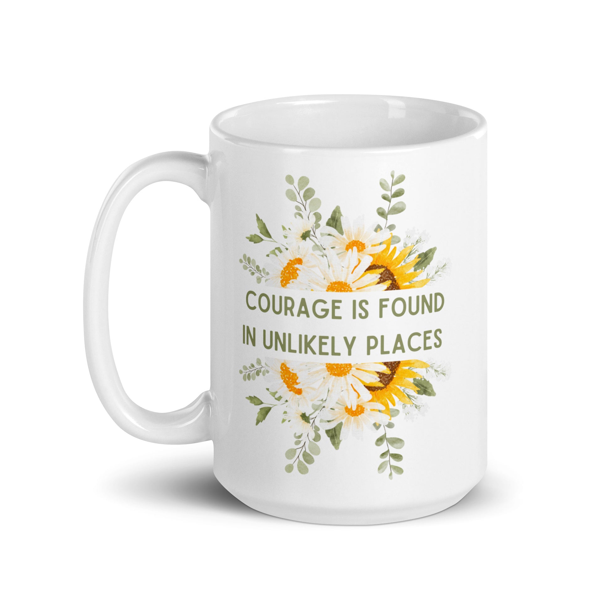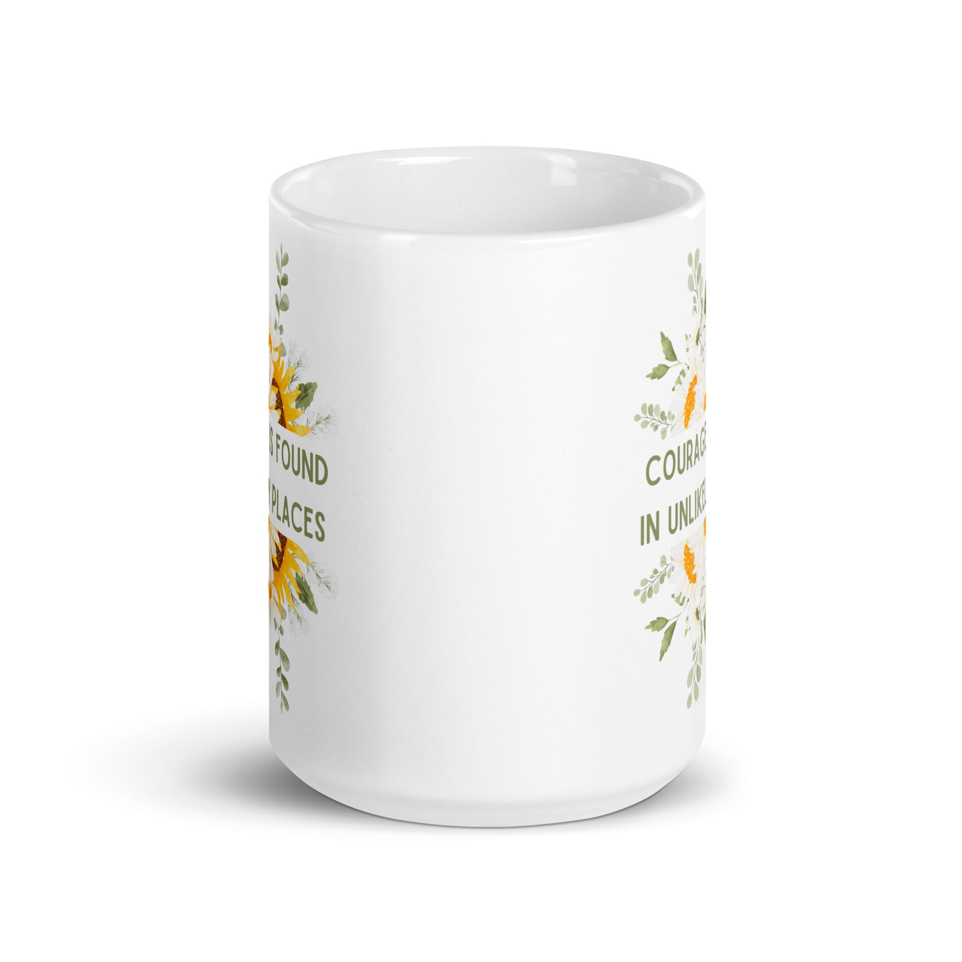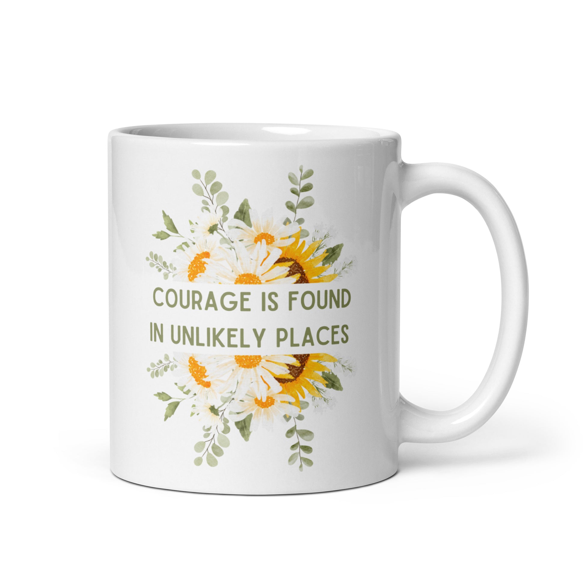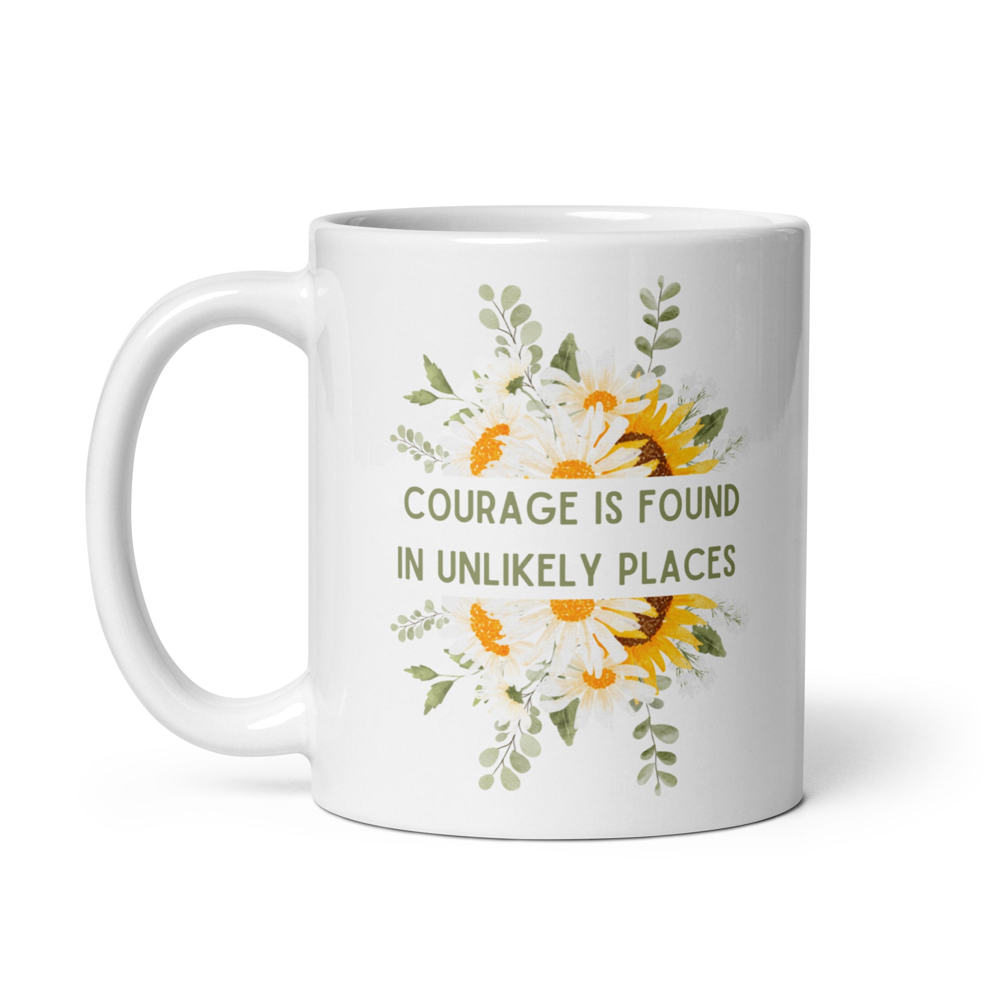 Courage Is Found In Unlikely Places White glossy mug