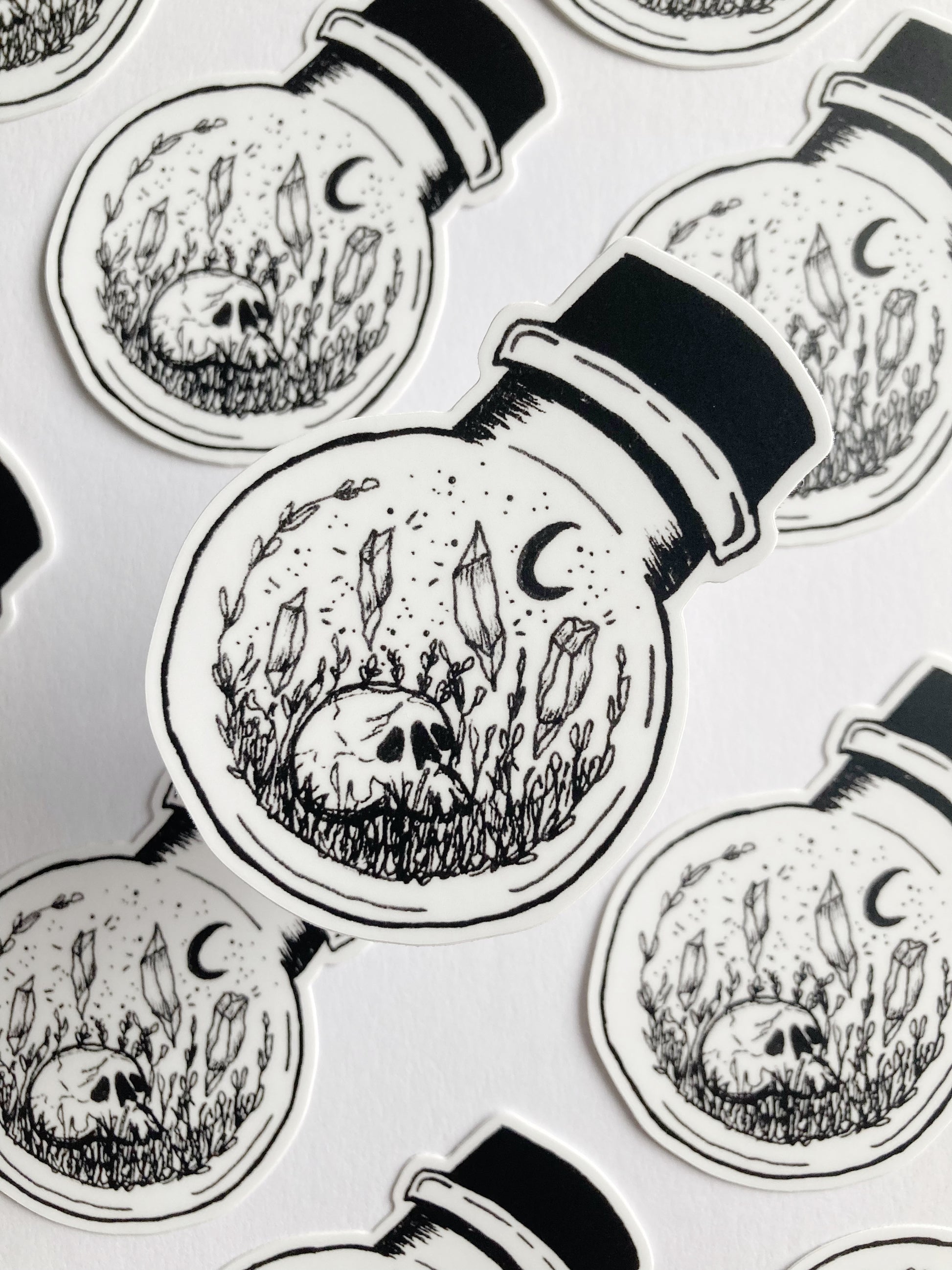 Crystals And Skull In A Bottle Sticker
