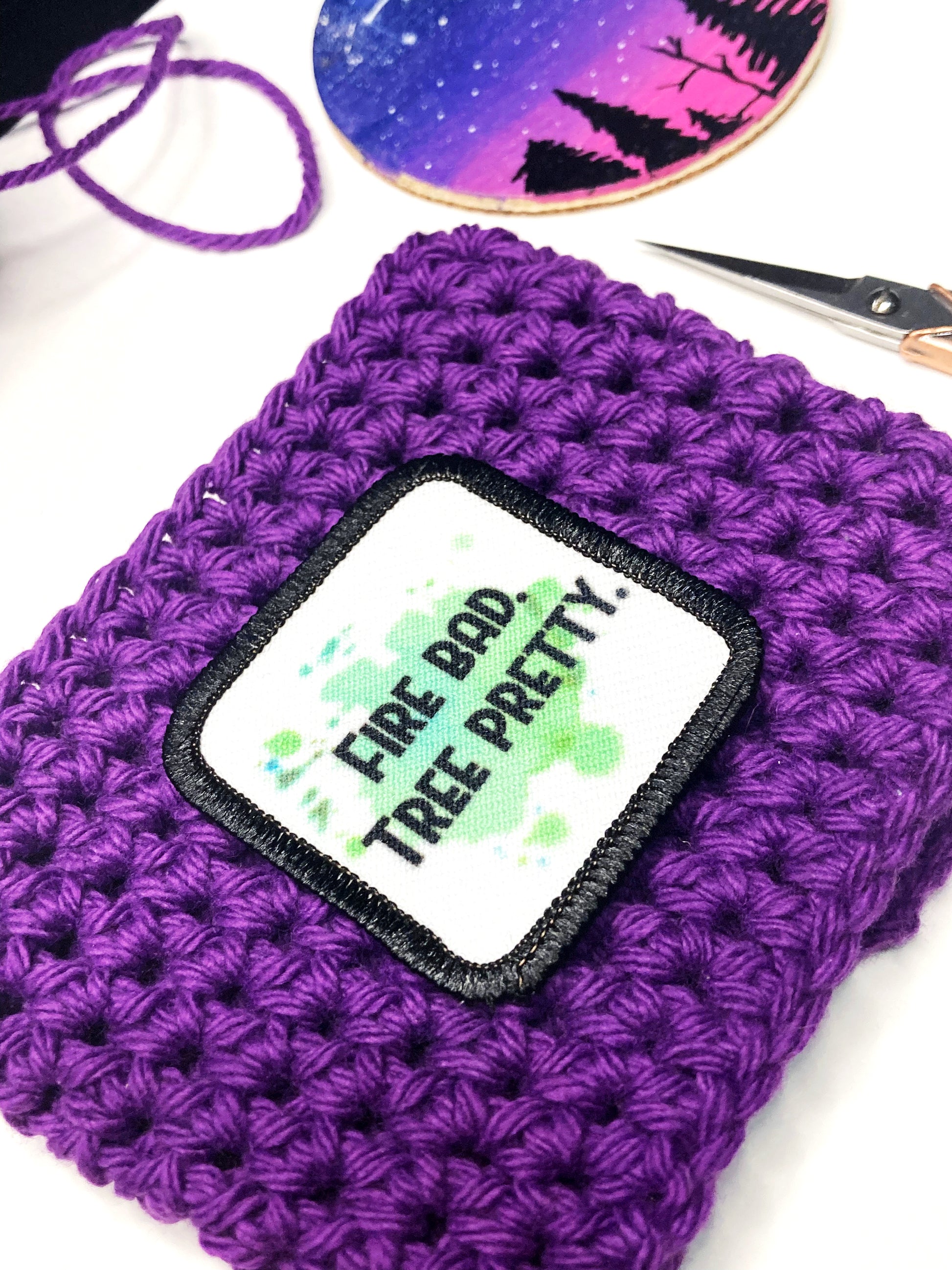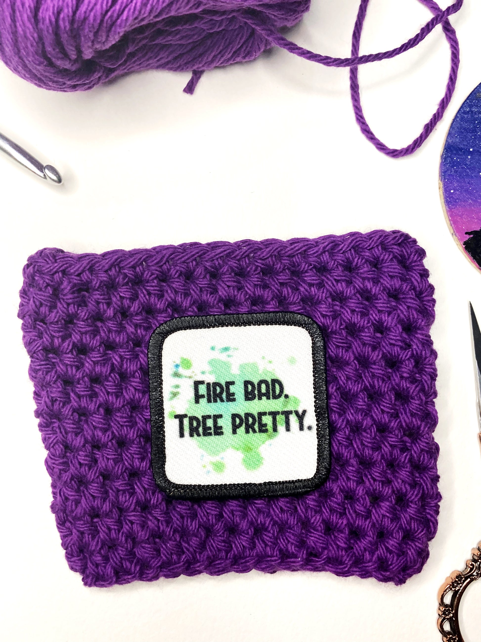 Fire Bad, Tree Pretty Slayer Quote reusable crochet coffee cozy