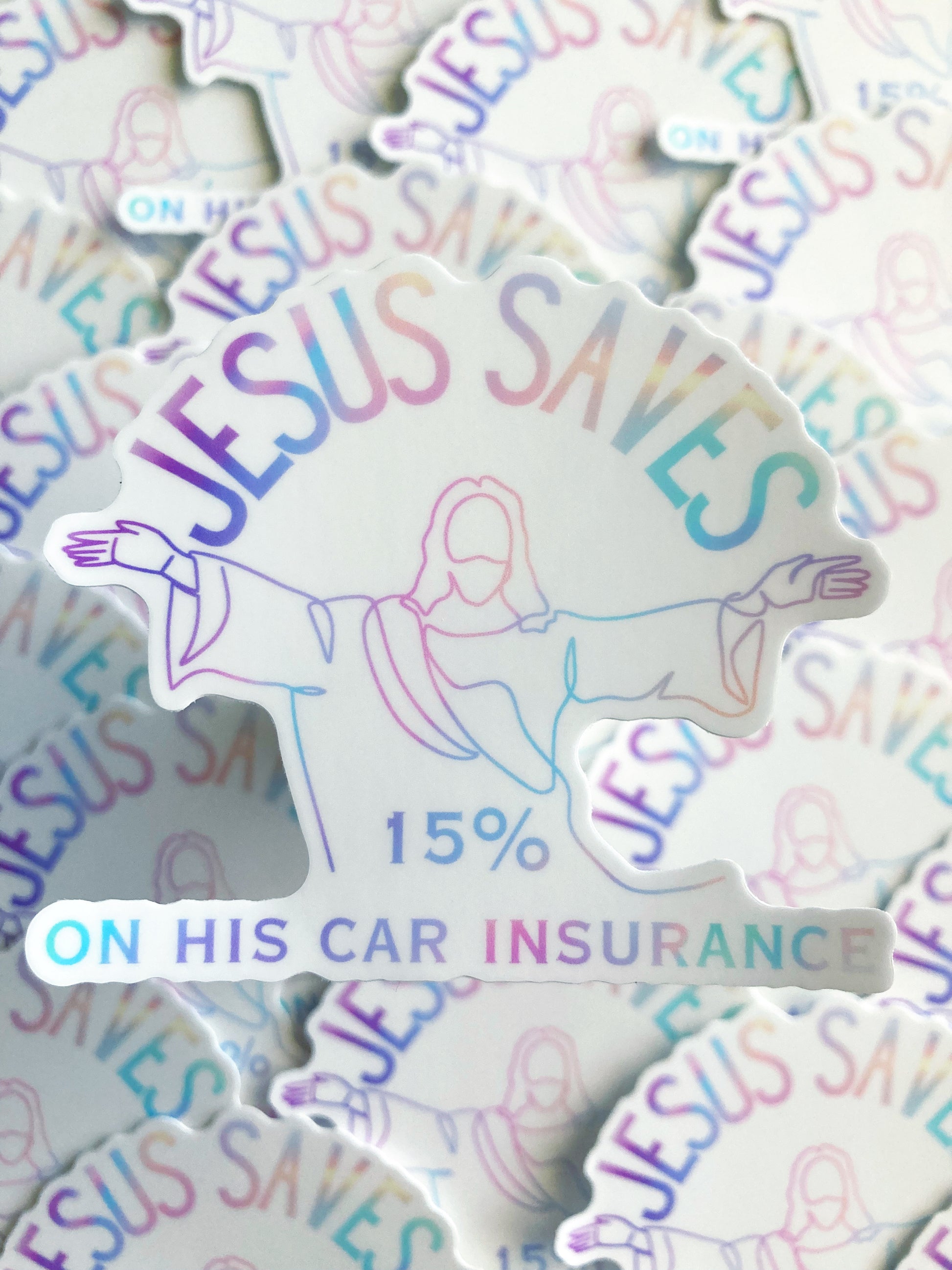 Jesus Saves 15% On His Car Insurance Sticker