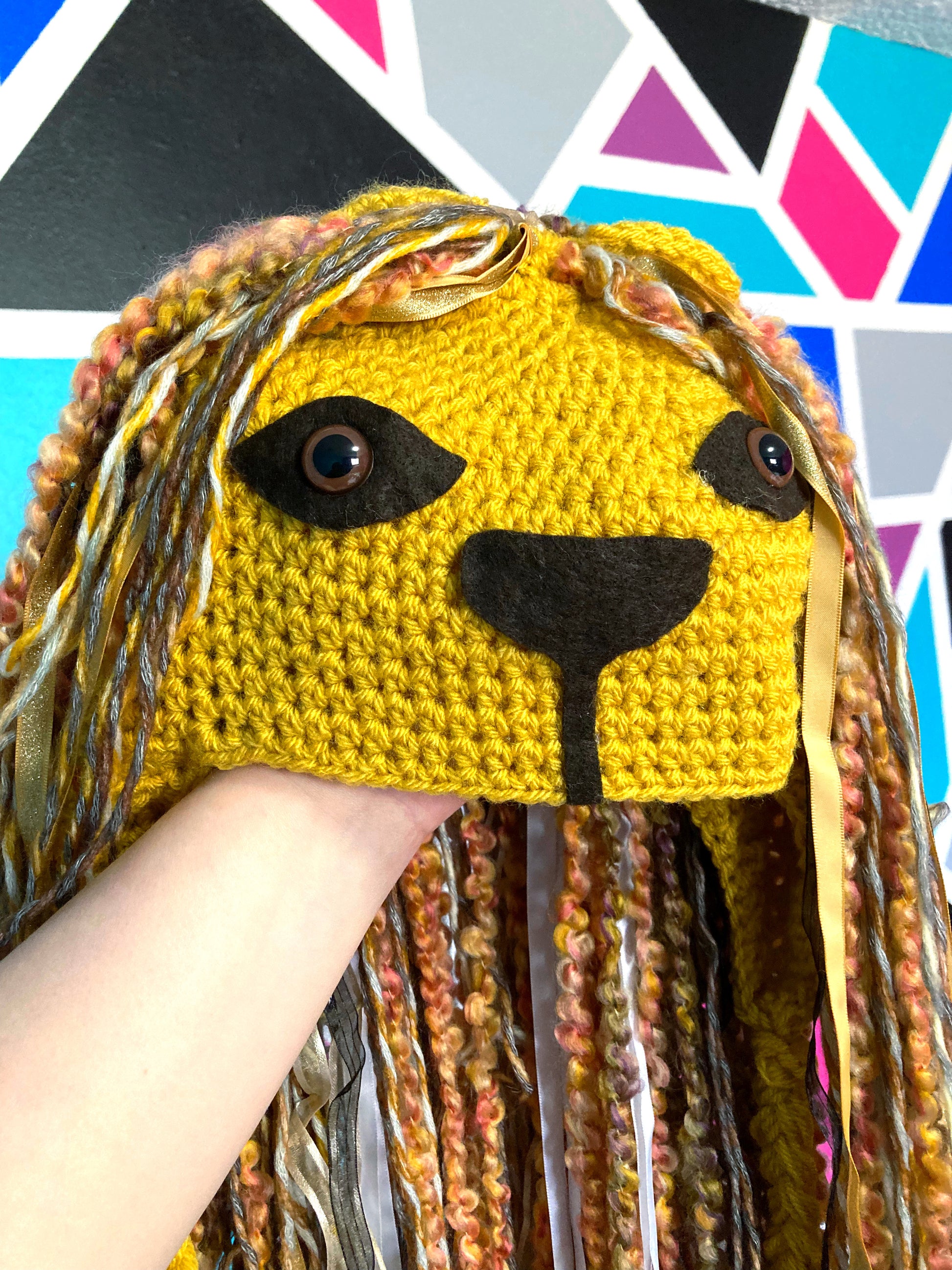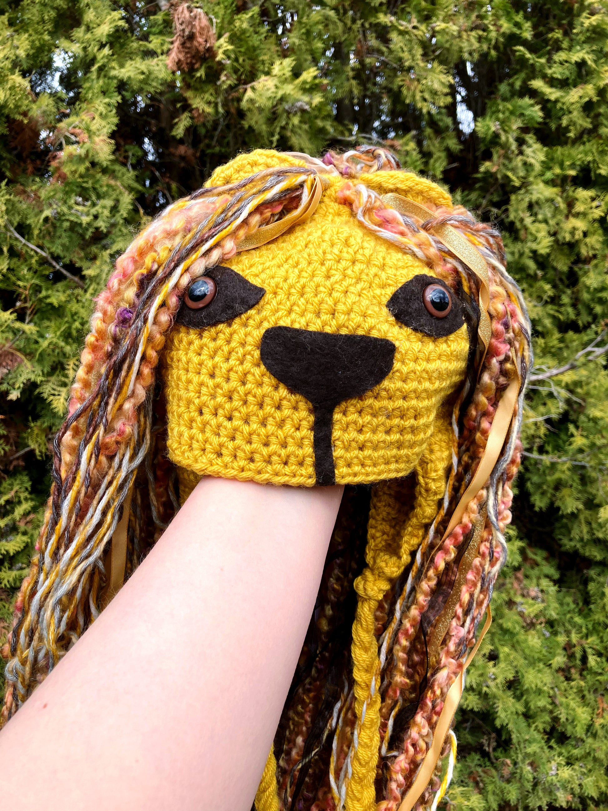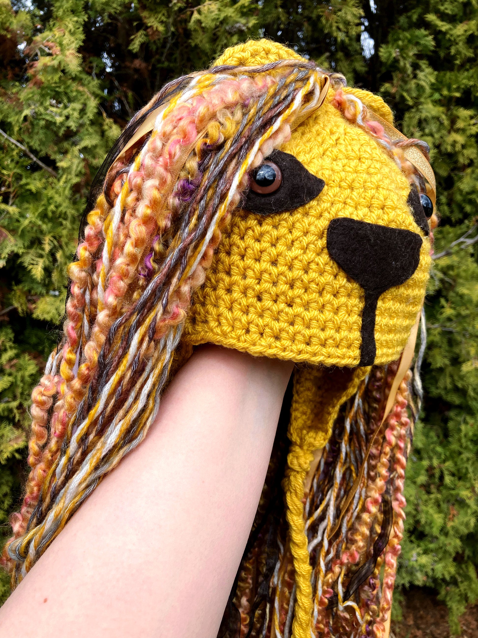 Fun whimsical crochet Lion hat.