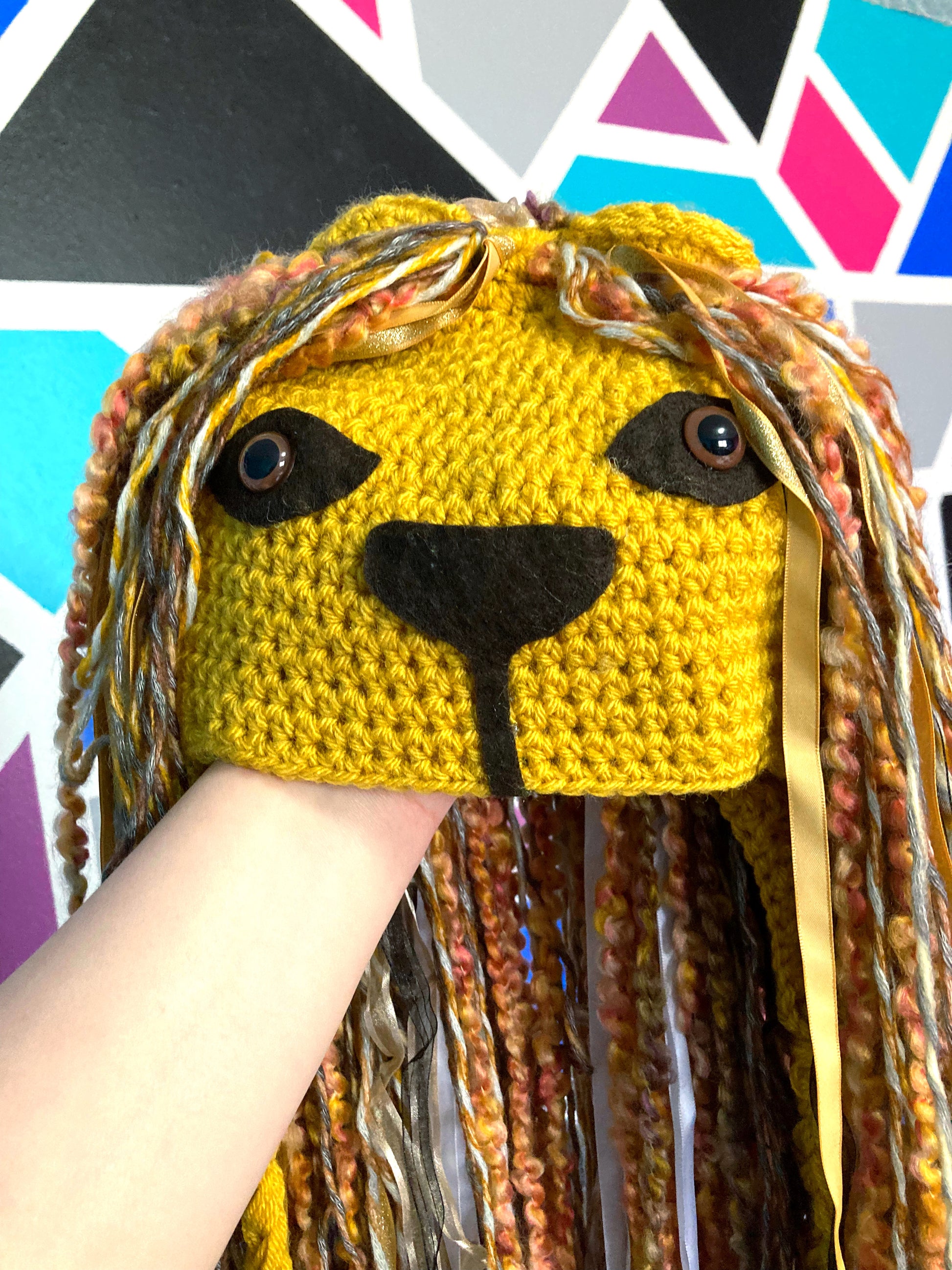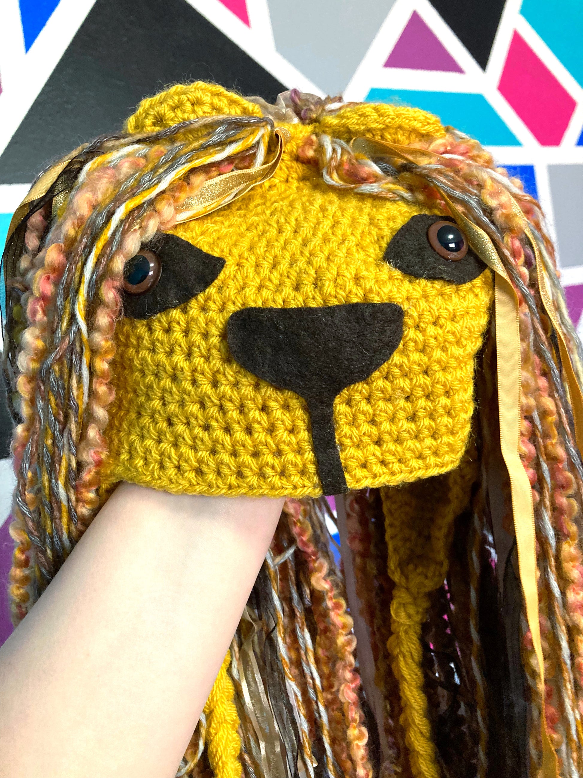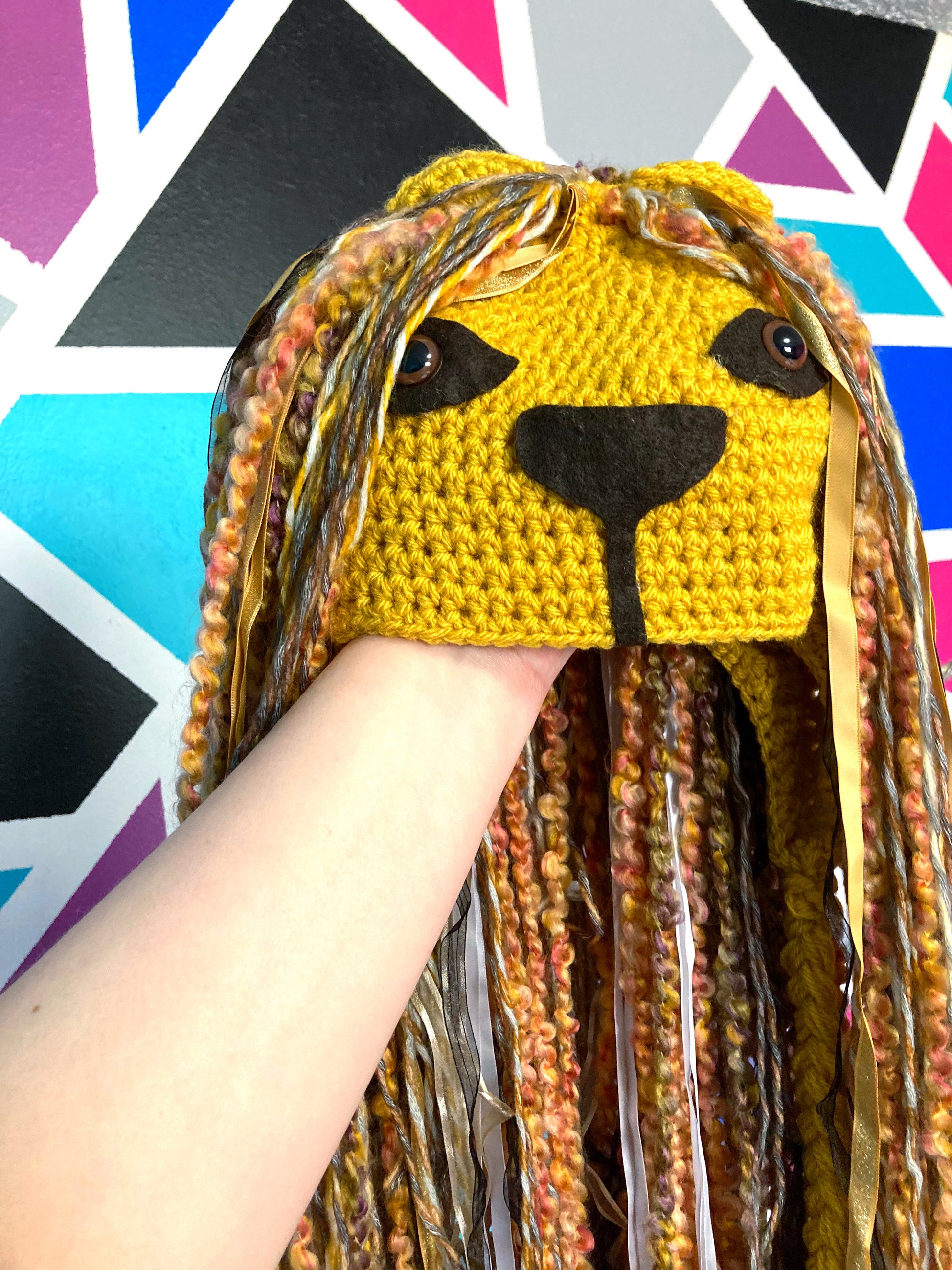 Fun whimsical crochet Lion hat.