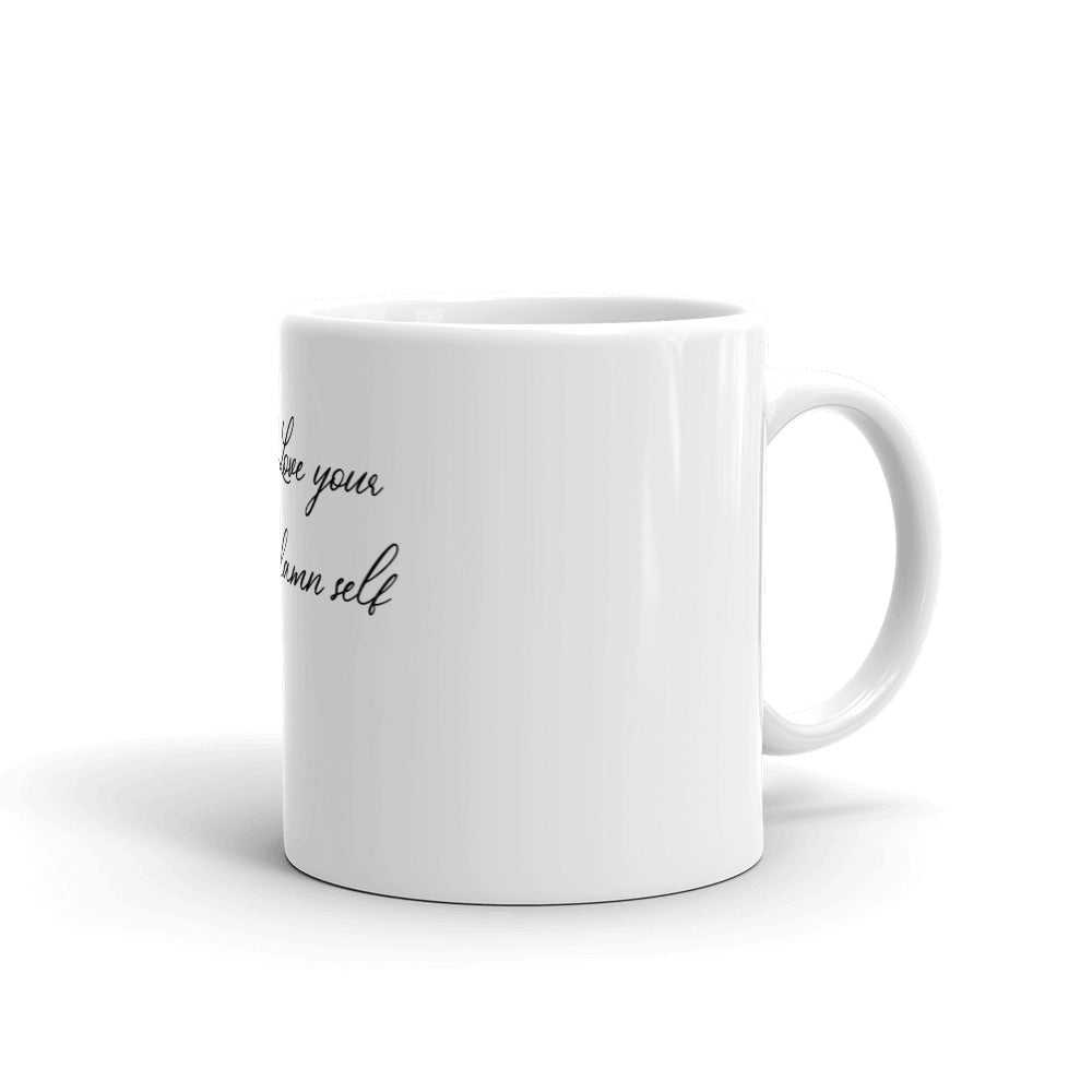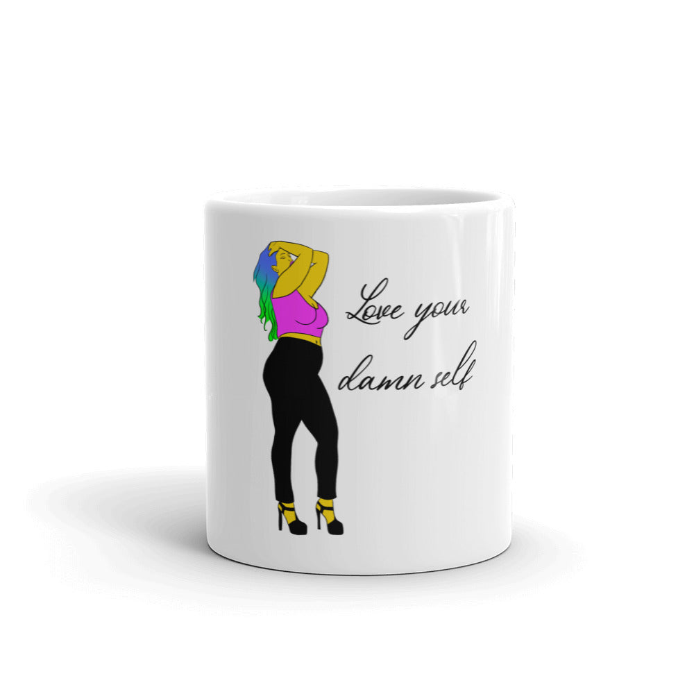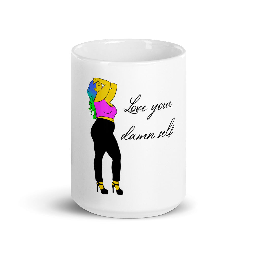 Love Your Damn Self White glossy mug