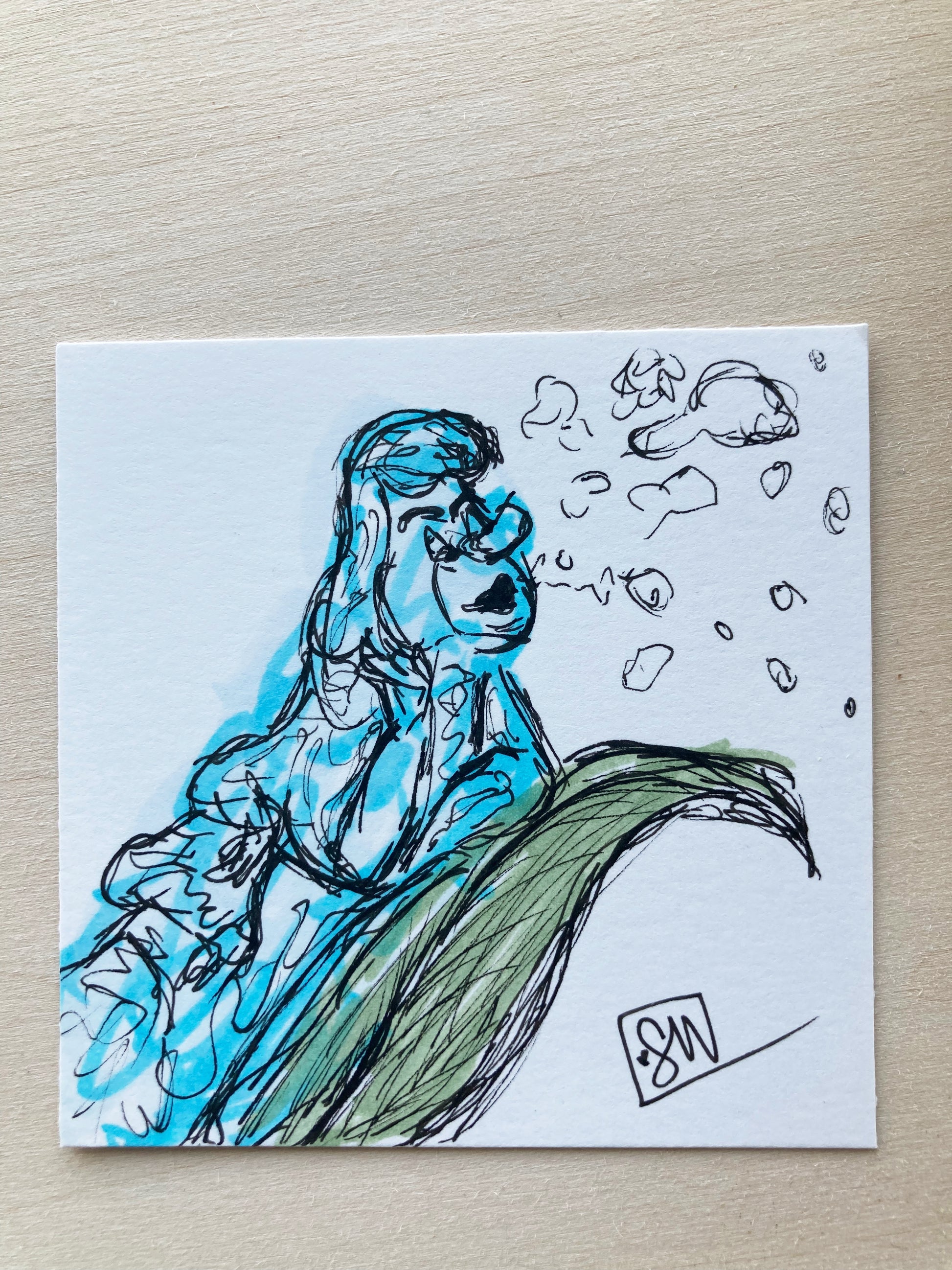 Original one of a kind ink drawing. This mini drawing is 3”x3” on smonth bristol paper. Signed on the front
