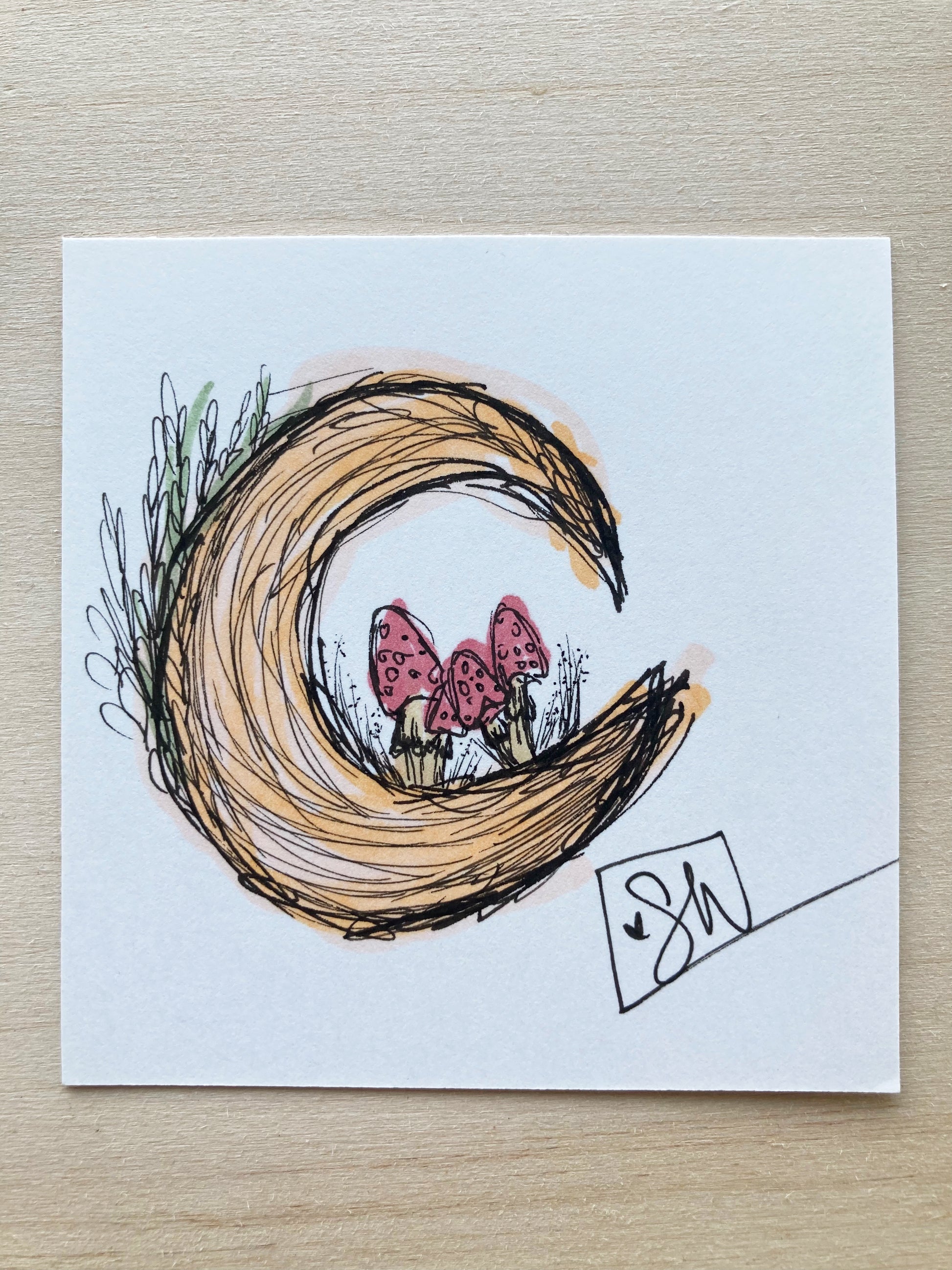 Original one of a kind ink and marker drawing. This mini drawing is 3”x3” on smonth bristol paper. Signed on the front