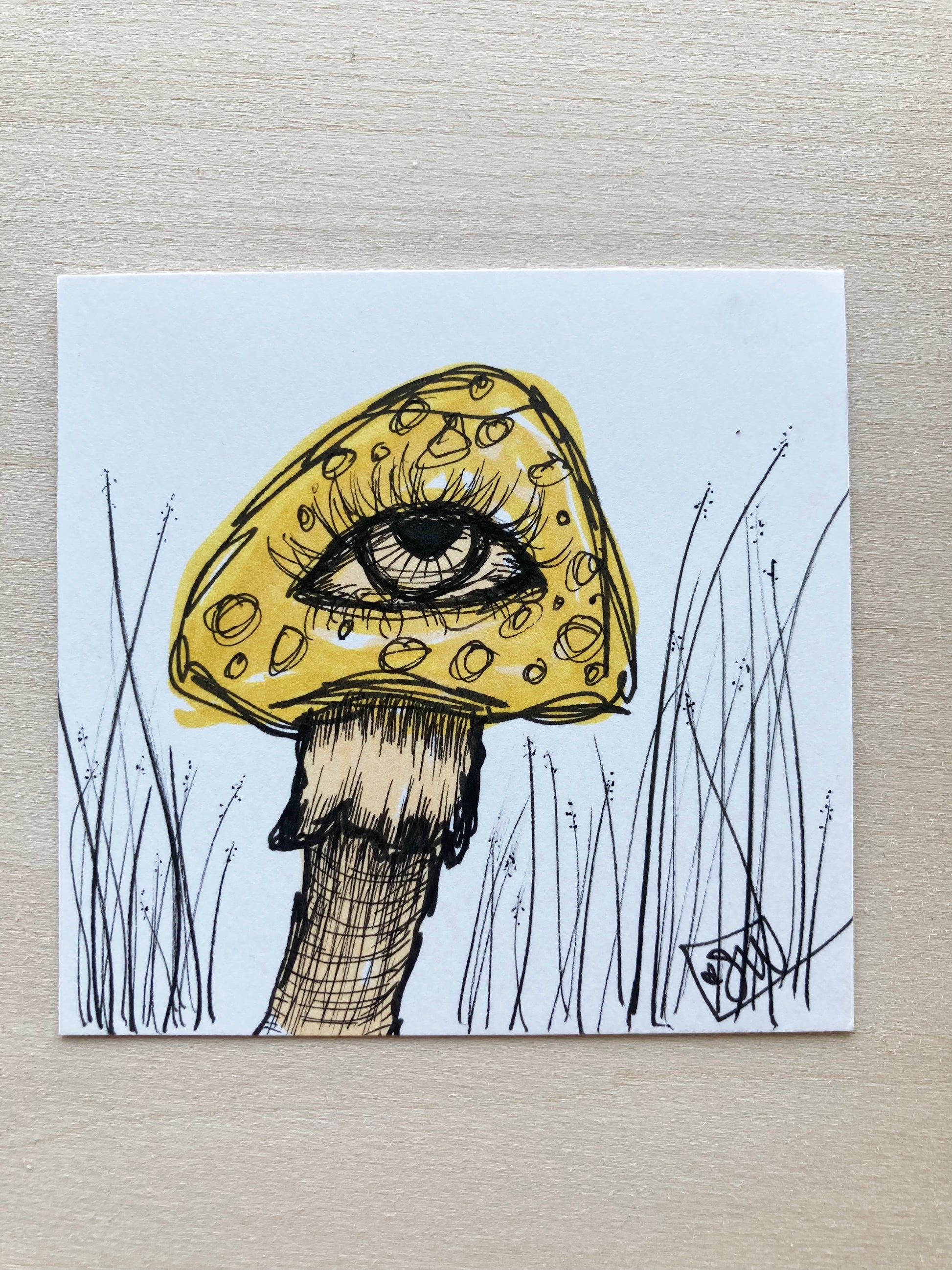 Original one of a kind ink drawing. This mini drawing is 3”x3” on smonth bristol paper. Signed on the front