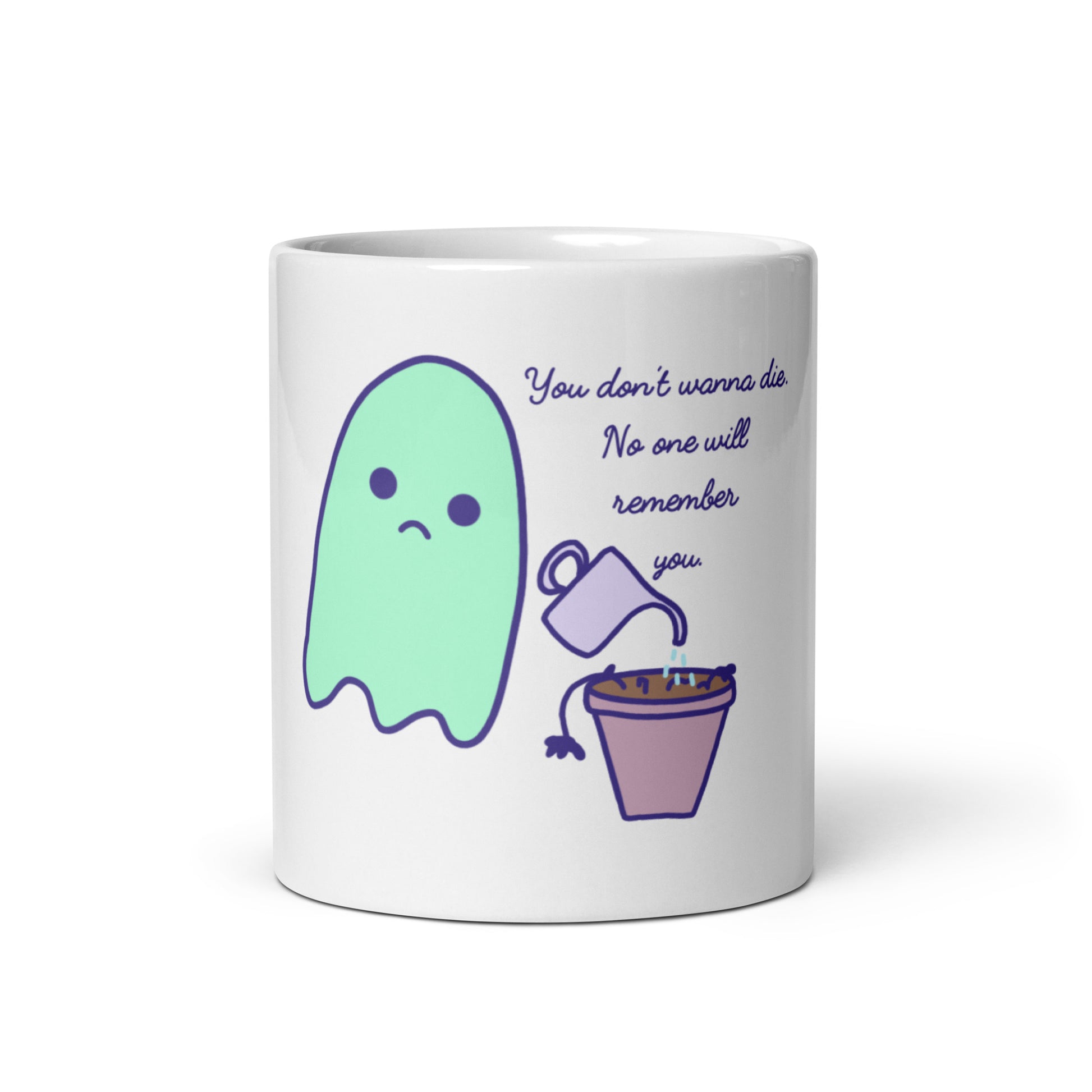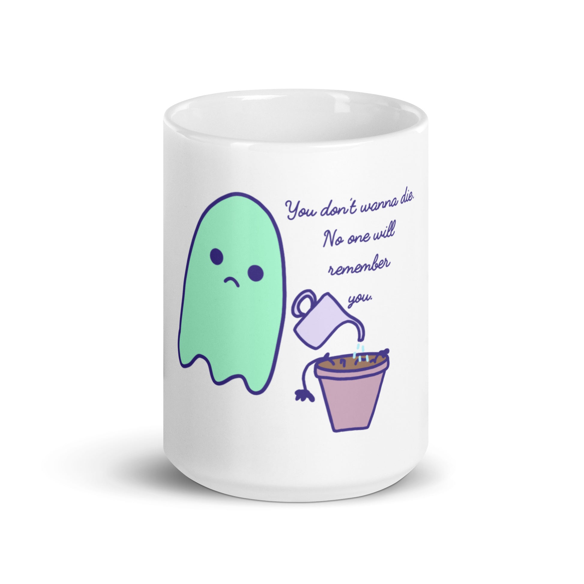 No One Will Remember You Sad Ghost Comic White glossy mug