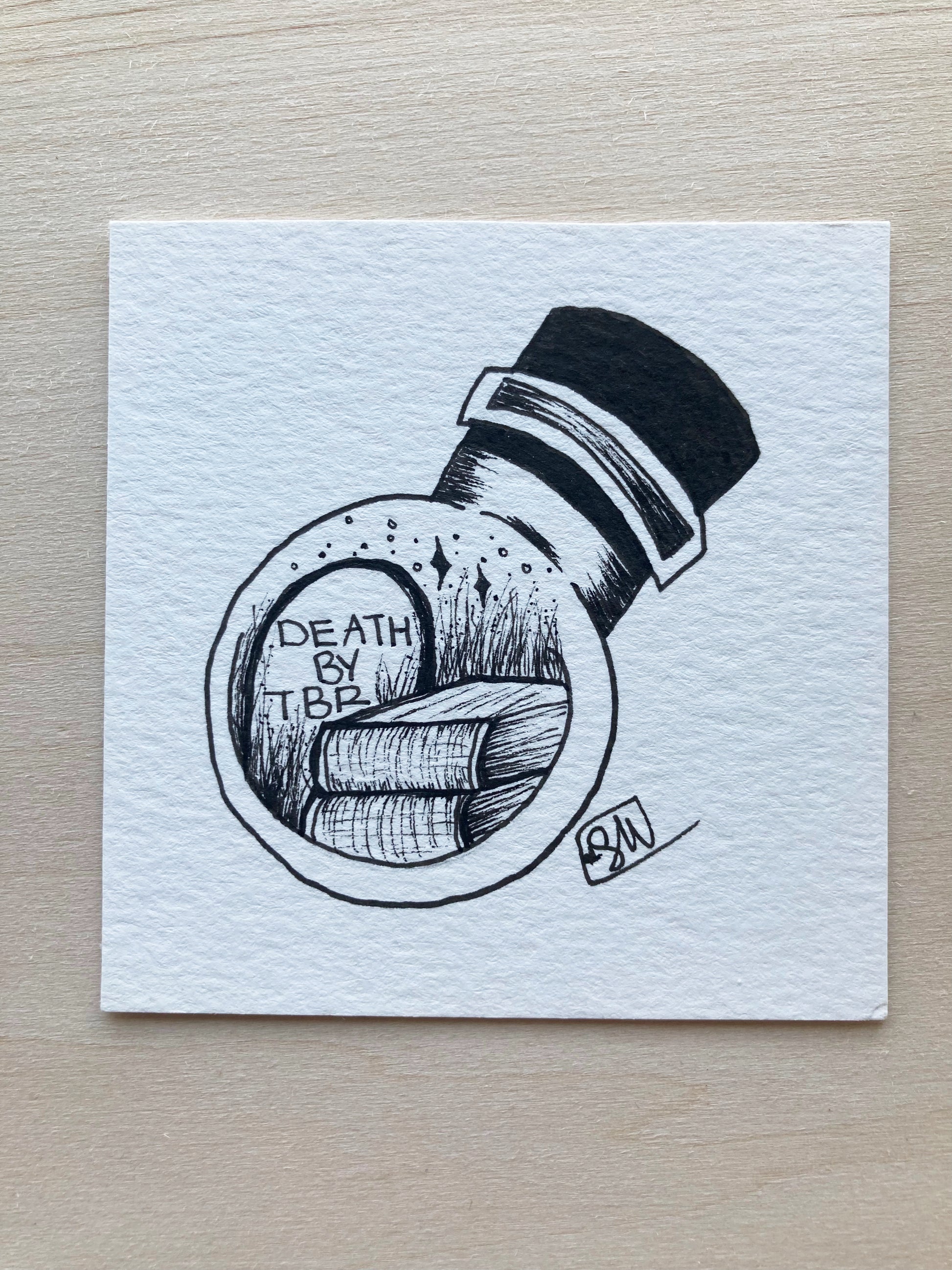 Original one of a kind ink drawing. This mini drawing is 3”x3” on 140 lb watercolor paper. Signed on the front