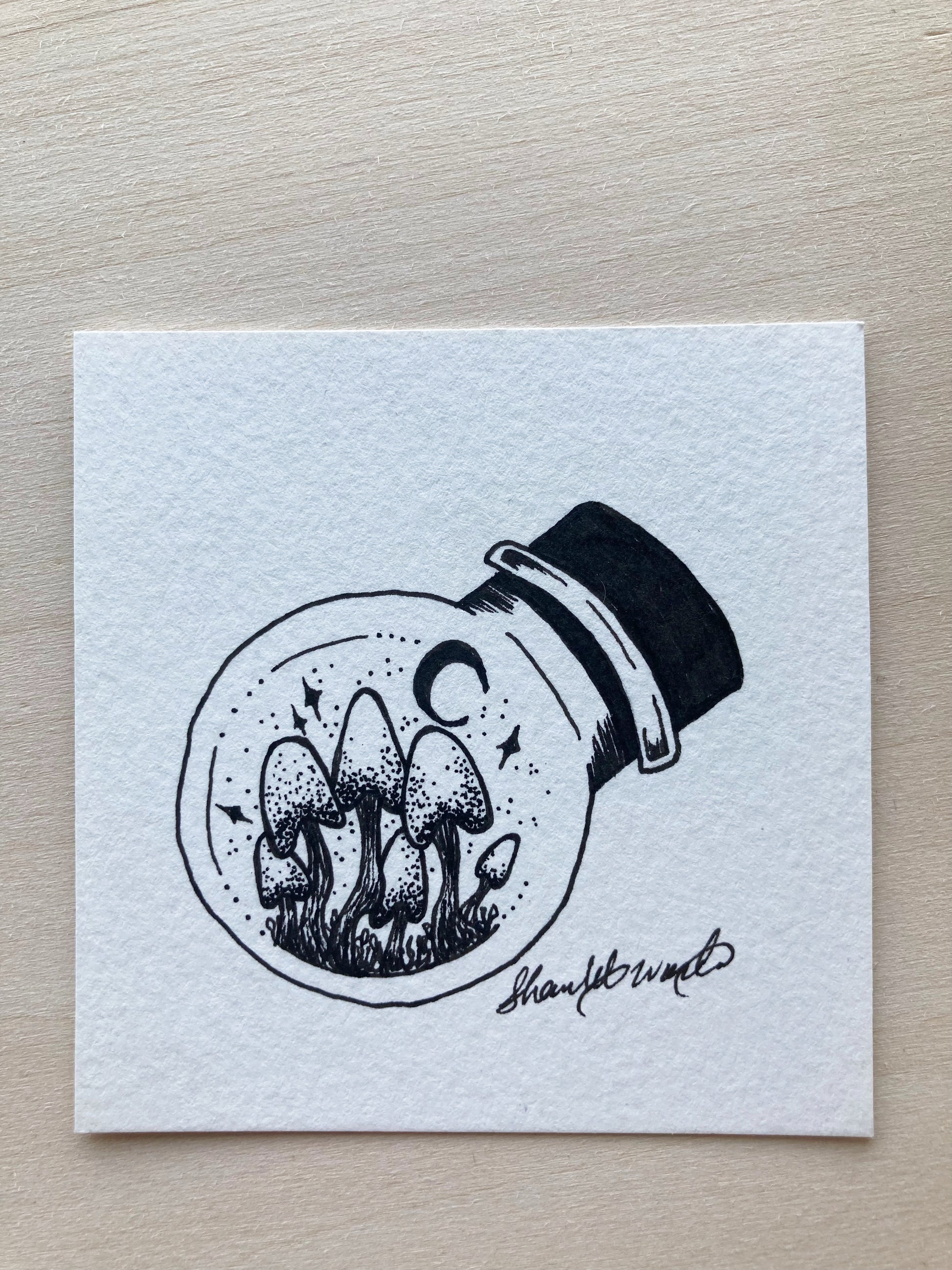 Original one of a kind ink drawing. This mini drawing is 3”x3” on 140 lb watercolor paper. Signed on the front