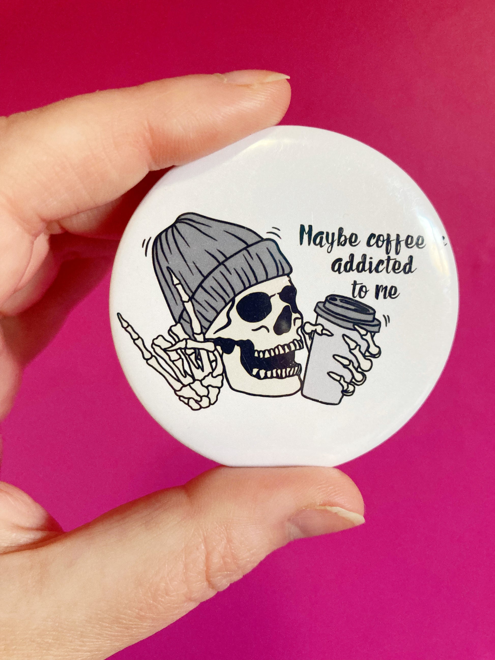 Maybe Coffee Is Addicted To Me pinback button 2.25”