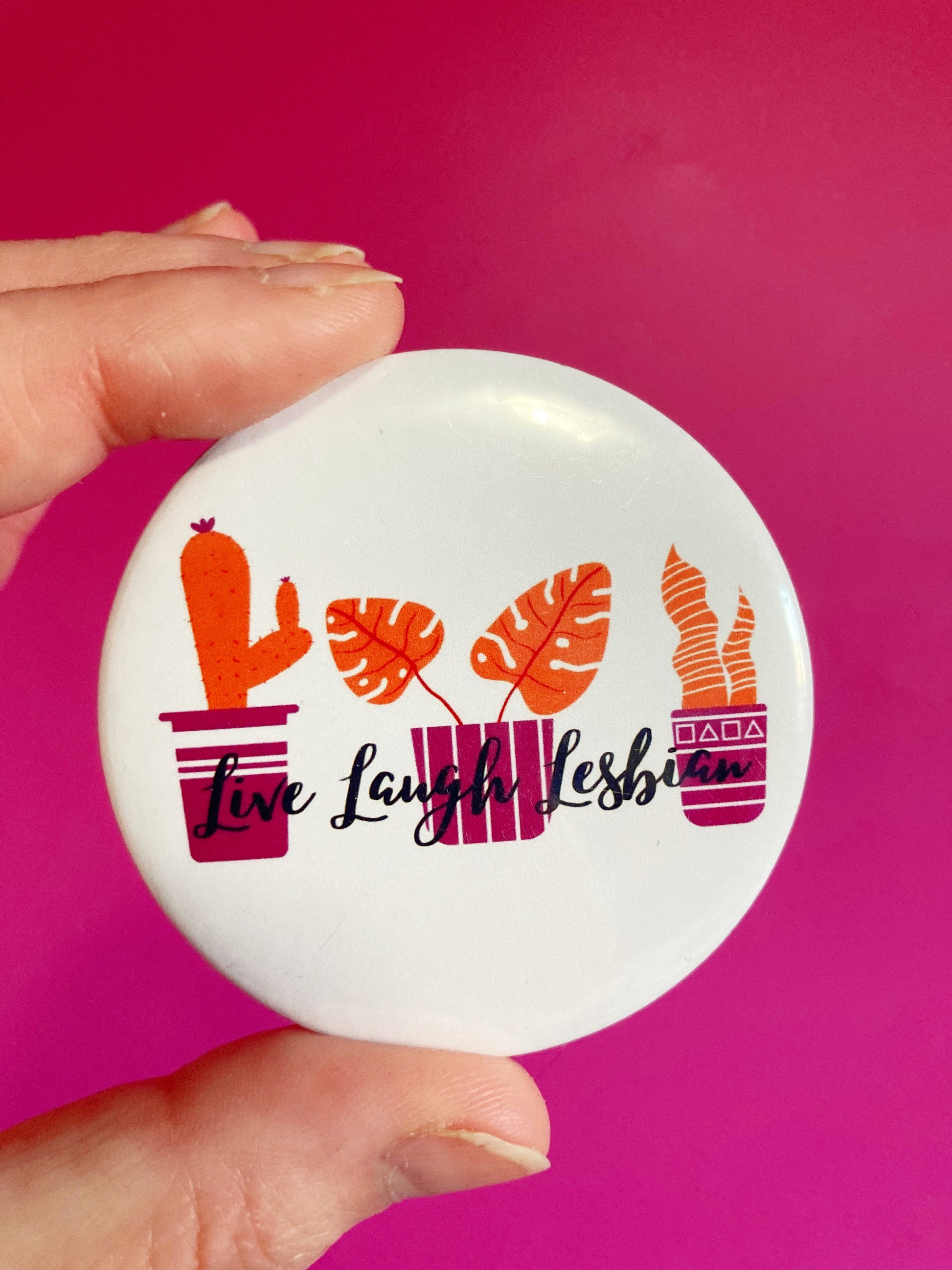 One 2.25” button. Image placement varies. Colors may differ in person due to device settings.