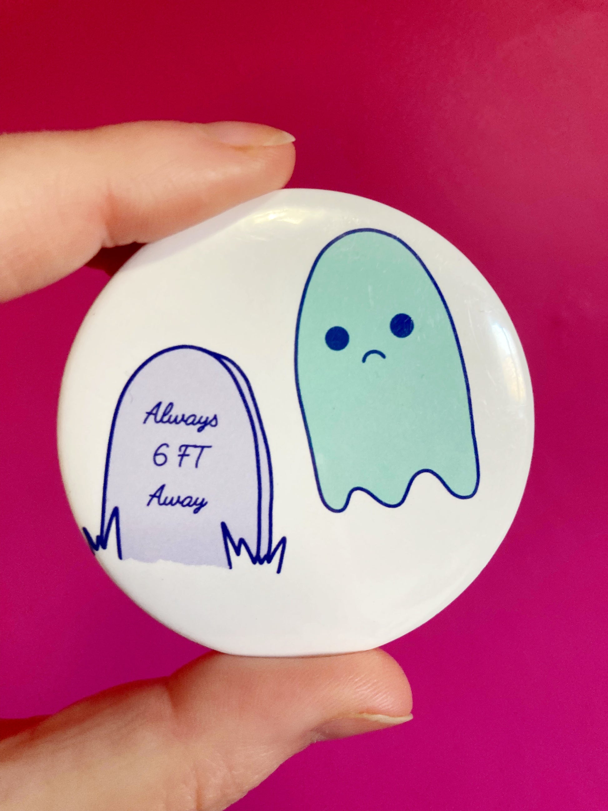 Always 6 Feet Away Sad Ghost Comic pinback button 2.25”