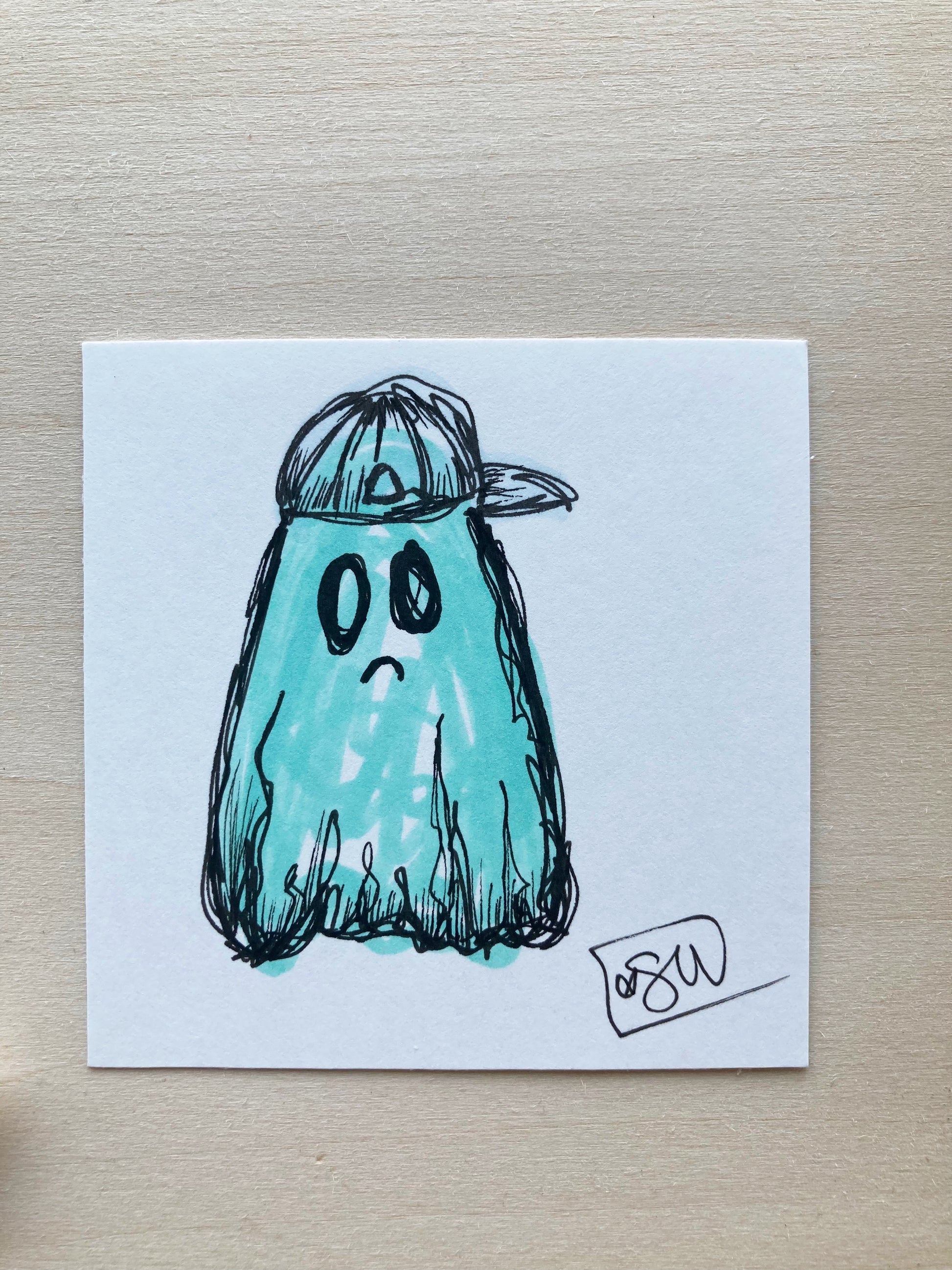 Original one of a kind ink and marker drawing. This mini drawing is 3”x3” on smonth bristol paper. Signed on the front