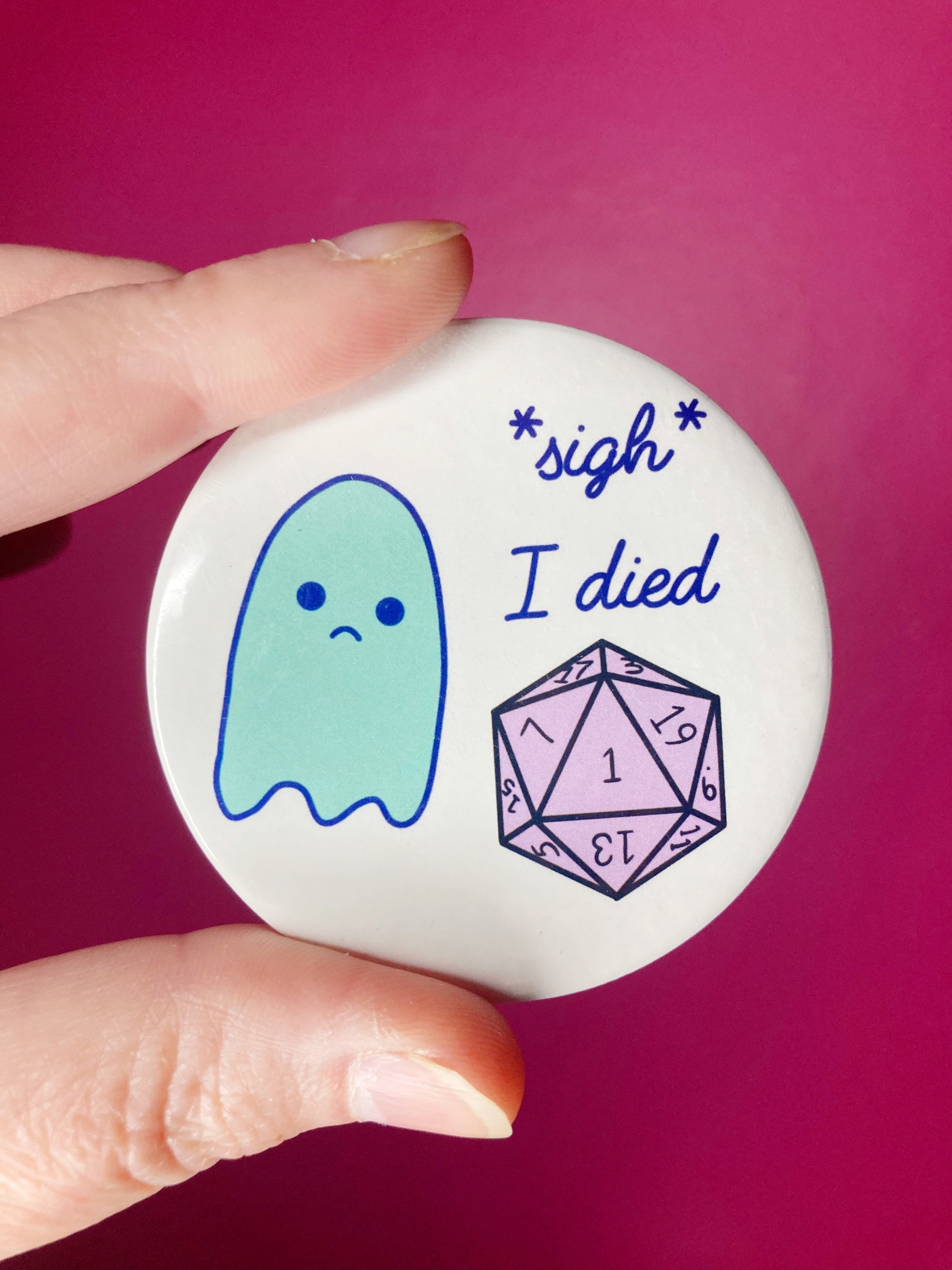 *Sigh* I Died Sad Ghost DnD pinback button 2.25”