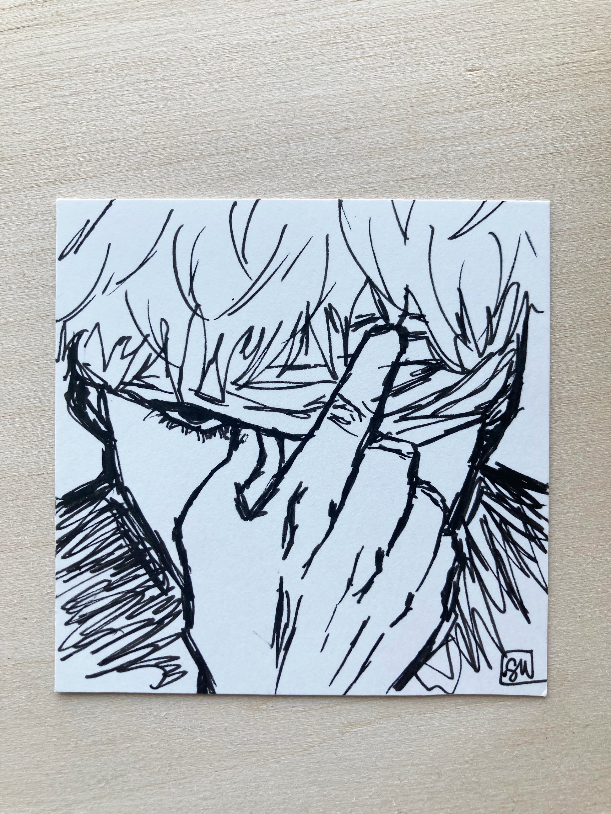 Original one of a kind ink drawing. This mini drawing is 3”x3” on smonth bristol paper. Signed on the front