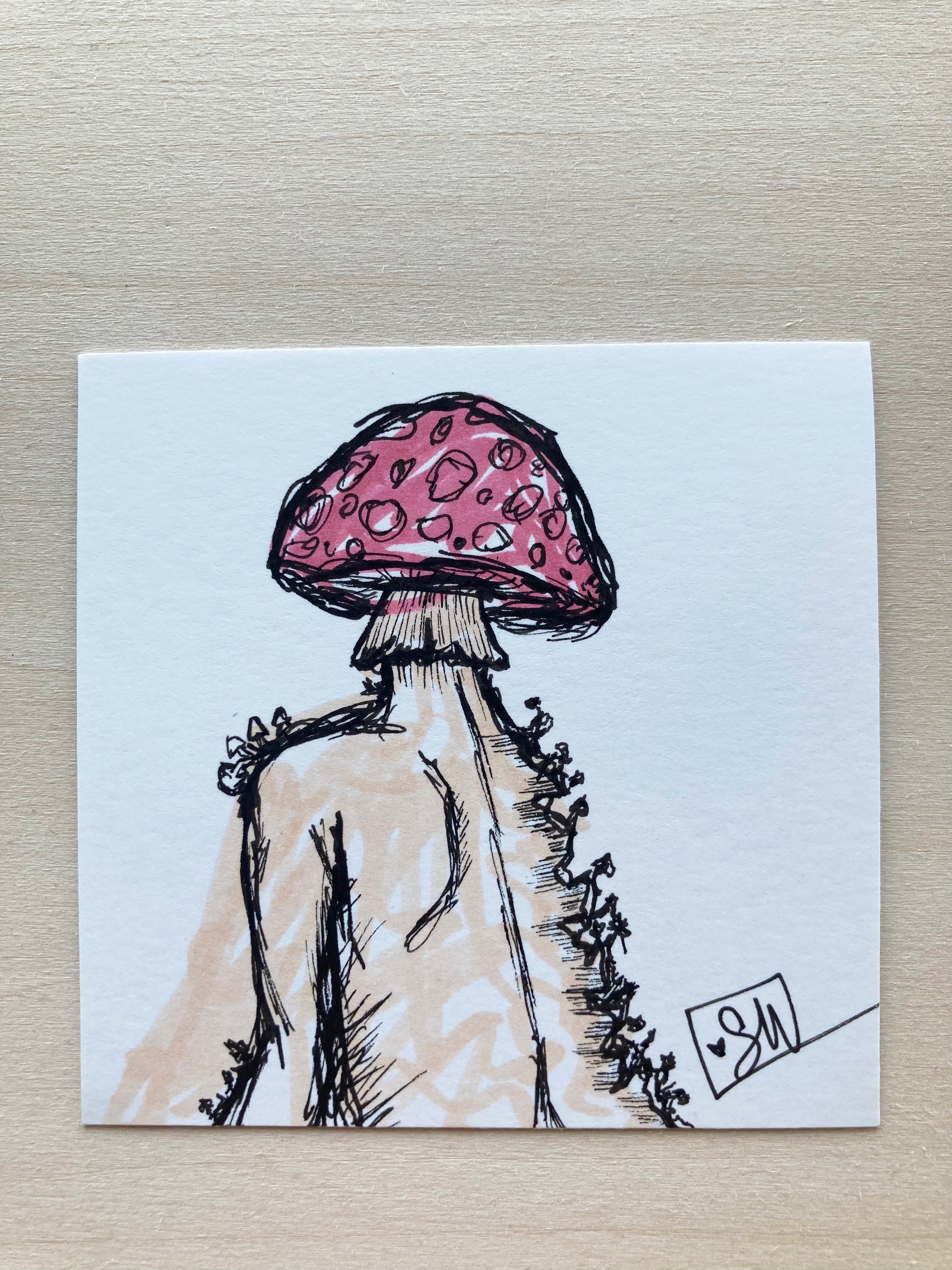 Original one of a kind ink and marker drawing. This mini drawing is 3”x3” on smonth bristol paper. Signed on the front
